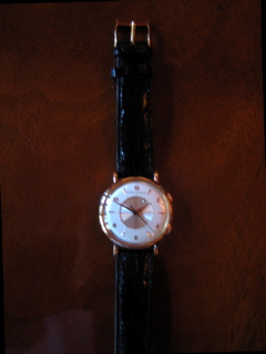 You folks seem incredibly knowledgable . . . so I thought I would ask about this watch, which, I'm told, my father bought from a friend of his in the 1950s. It is yellow gold (forgive the photo), and is very thick and heavy. (I have it on a croc band, but I also have the 24k gold band that my father wore it on.) It's not really my style - I'm more of a Timex Indiglo guy - and though it has some sentimental value, I thought I might sell it. Any idea of value; how best to sell such things; etc.? Thanks. |