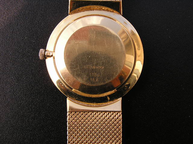 I am trying to get an idea of the value of a men's Bucherer selfwinding watch purchased in 1972. It is 18 ct case and bracelet, 34 mm diameter and 9 mm in thickness. The model number maybe 256-557-7. Case back is stamped 1530, waterproof, 18k.  |