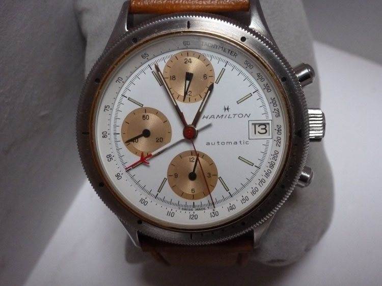 Hello, I'm french, hopping my american would not enough good to be understood ! I have this automatic Hamilton chronograph HMT case number 189.I can't opening the case because I've not the tool like for rolex case! Perhaps it is a 7750 version ? There are 3 counters and 2 central hands, when I start with the 2hours pusher, sweep second start and i remark that per exemple 3 minutes later the second hand is moved seeming indicating 3 minutes passed but when I want to reset It seems not all counters reset ! If I move hour hands with crown, the up counters hand turns and indicates same as hour hand position ! And per exemple, If you look at the picture how interpretting ? Do you know how functions this chronograph