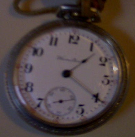 Hello, It is ironic but i just recieved my great grandfathers watch which is identical to yours and I live in Alaska. I am curious as the model and value on mine also. I do not have the coin or chain attached to mine but the clip is still attached. My grandfather work for catapillar and fireman. I am patiently waiting any information. I can send photo if needed but it is pretty much exactly like that. I unscrewed the lens and there is a little metal pull out tab but that is as far as i got because i dont want to break it. You can email me back at [email protected] if you would like or if you have any questions. TY .. Mat |